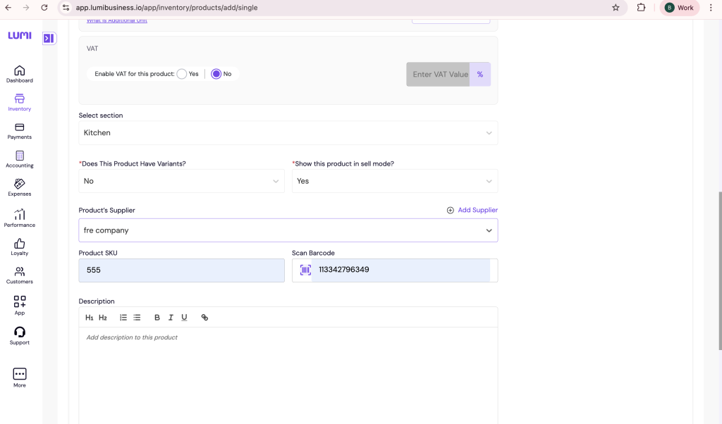 Why this matters: Ensures every SKU is properly registered for future scanning in your barcode inventory system Nigeria.Add Barcode During Product Creation