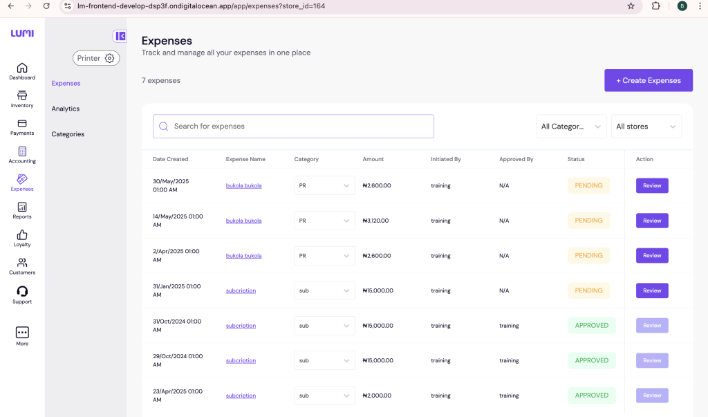 Business owners and admins can now edit or delete expense categories directly within the system. This allows merchants to remove outdated categories, correct mistakes, and tailor expense structures to match their actual operations.
