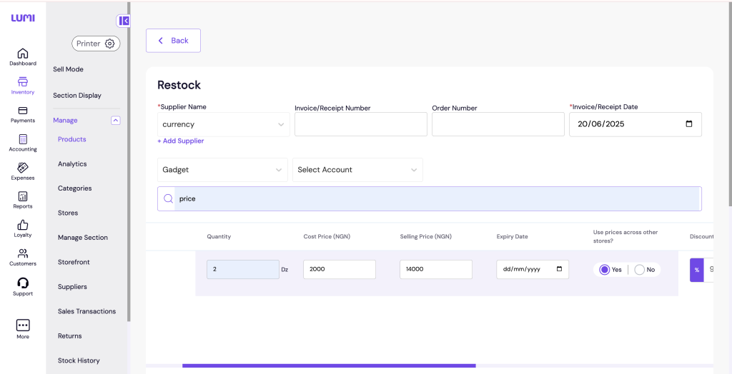 Inconsistent pricing across locations can lead to customer dissatisfaction and operational confusion. Lumi Business now gives merchants price synchronization control during restocks and stock transfers.